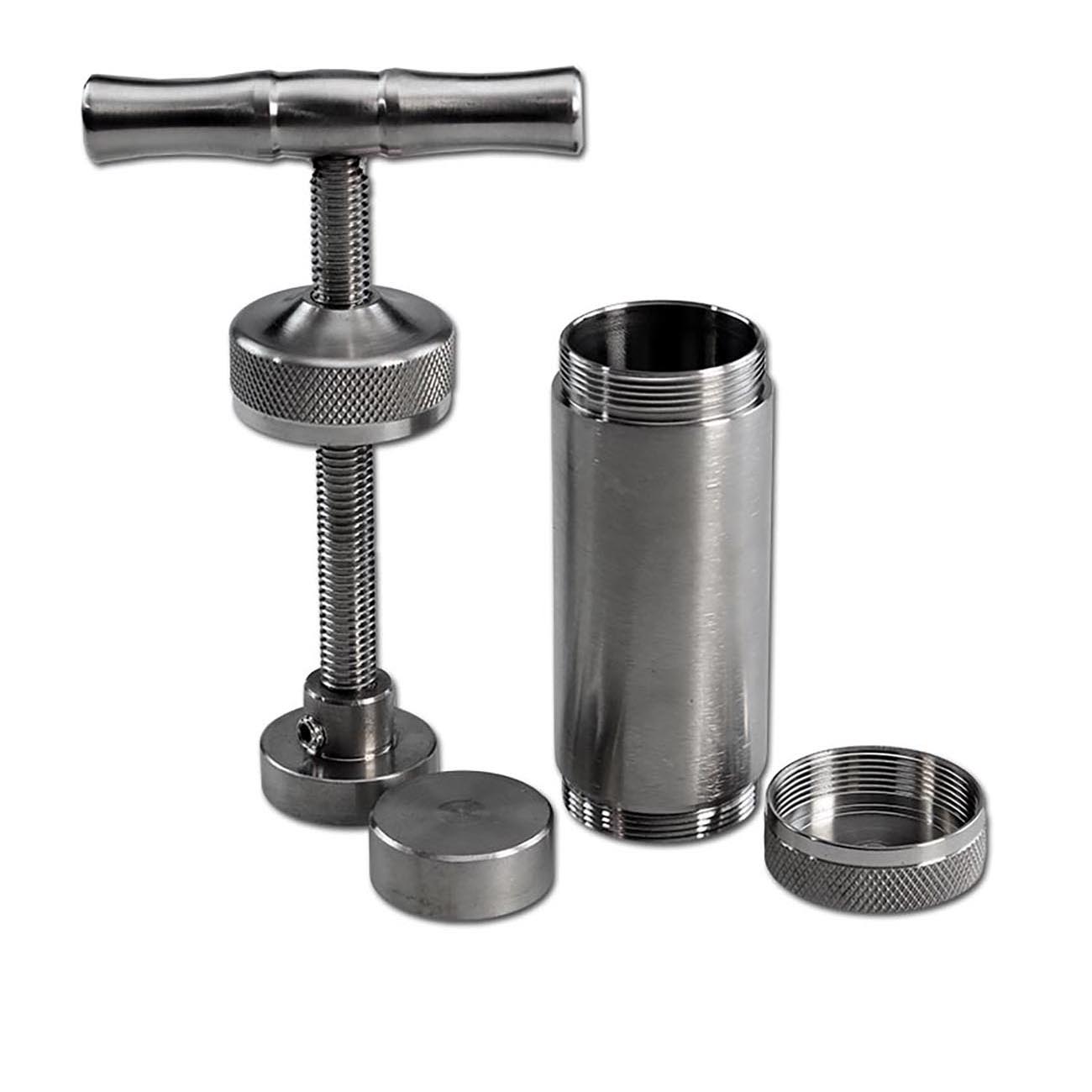 4-delni T-Press od Black Leafa je izdelan iz najboljšega nerjavečega jekla in je enostaven za uporabo. T-Press stisne slastne delce cvetnega prahu z močjo vijaka. Dodaten valj iz nerjavečega jekla povečuje učinek tlaka. Enostavno napolnite cvetni prah v stiskalnici, postavite jeklenko na vrh, obrnite stiskalnico in nato z vrtenjem ročaja pritisnite cvetni prah na želeno gostoto.